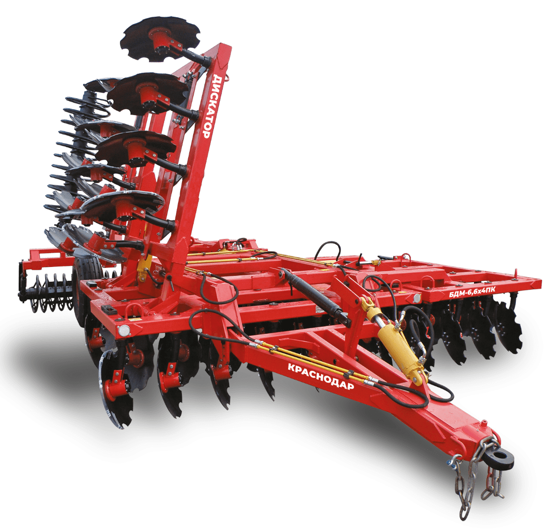 Дискатор БДМ-6,6х4ПК - дисковое почвообрабатывающее орудие. Предназначен для поверхностной обработки почвы на глубину до 15 см, уничтожения сорняков, измельчения пожнивных остатков. Применяется в различных агроклиматических зонах на большинстве типов почв. Эффективен для основной и предпосевной почвообработки, введения в оборот залежных земель, омоложения лугов и пастбищ.